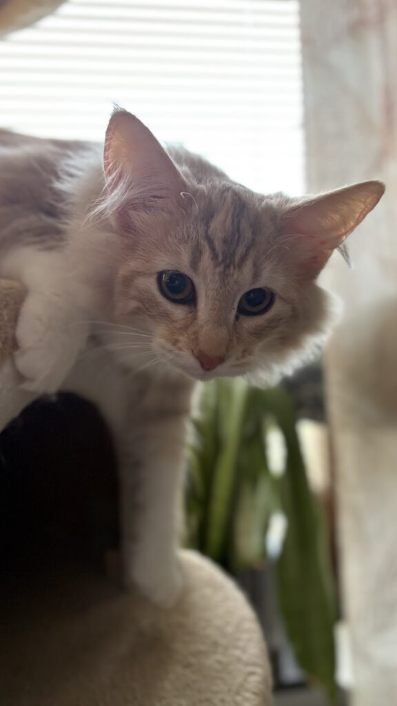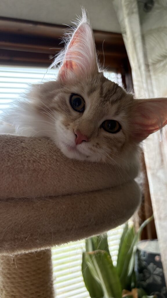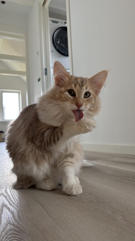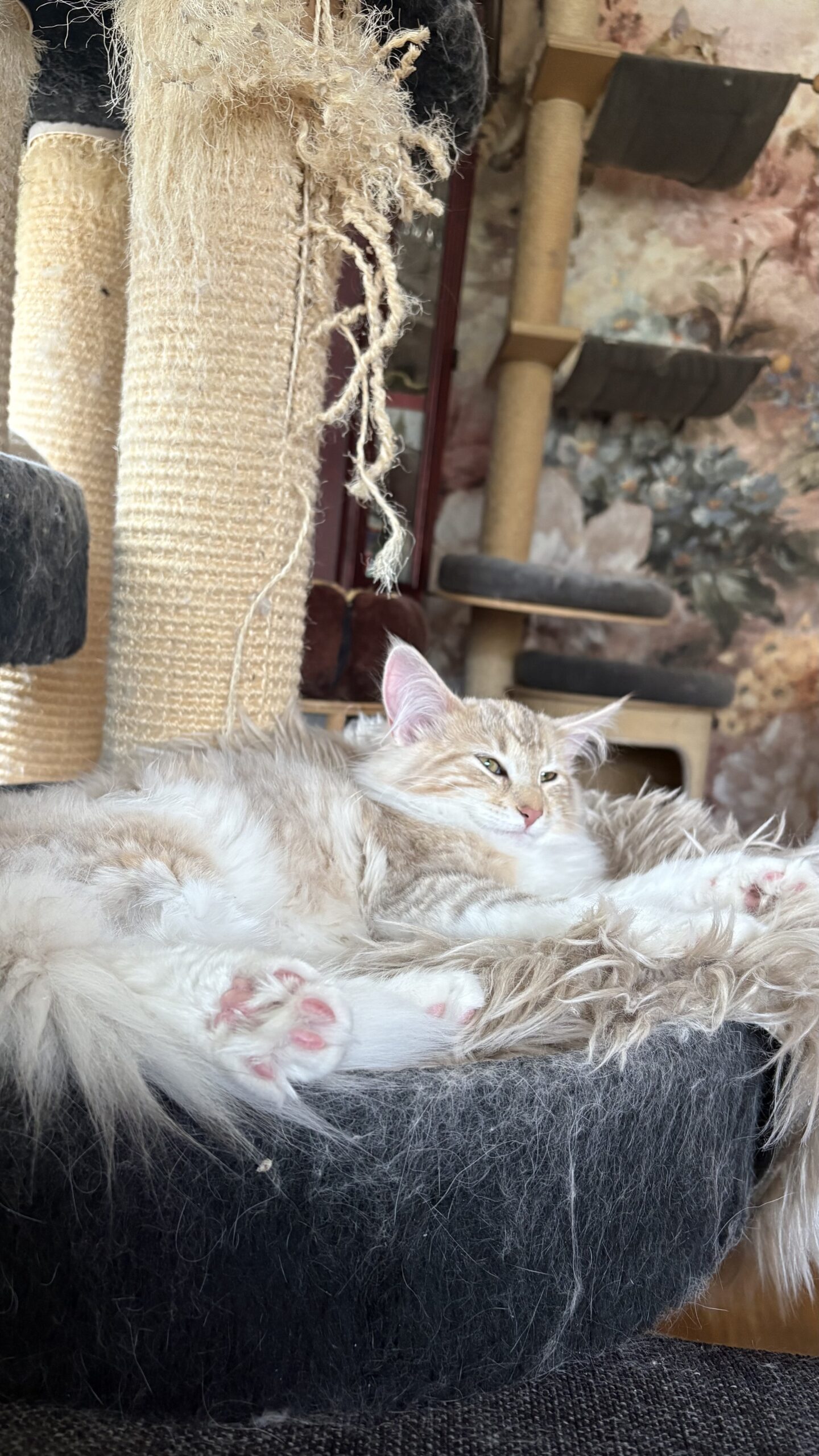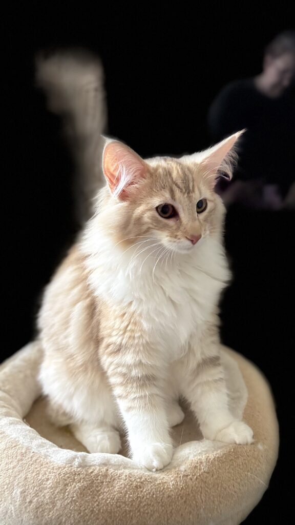 Vårt senaste tillskott till katteriet är ingen mindre än SE* Whiteberry’s Queenly Majesty. Låt inte det kungliga namnet lura dig – även om hon bär upp det med stolthet, är hon i själva verket en riktig liten tuffing som tar sig an världen med mod och nyfikenhet.